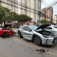 Colisão entre Mustang, Cronos e Lexus deixa um ferido em Águas Claras