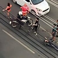 Na tarde desta segunda-feira (17), o Corpo de Bombeiros Militar do Distrito Federal (CBMDF) atendeu a uma ocorrência envolvendo a colisão de uma bicicleta com um veículo Chevrolet Montana branco, em Águas Claras. Diante do impacto, a vítima, um adolescente, foi avaliada pelos socorristas e apresentava um corte no braço esquerdo. Felizmente, ele estava consciente e orientado. Por isso, recebeu os primeiros socorros no local, incluindo a realização de um curativo. Em seguida, após a regulação médica, o pai do menor optou por transportá-lo por meios próprios até uma unidade hospitalar para atendimento complementar. Até o momento, as circunstâncias da colisão não foram informadas.