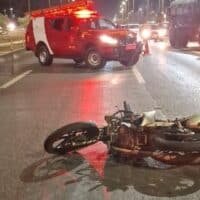 Pouco depois, outra ocorrência mobilizou duas viaturas do CBMDF. Dessa vez, um carro Renault branco colidiu com uma motocicleta Honda CG 160 Titan. O motociclista, de aproximadamente 25 anos, sofreu luxação na clavícula direita, escoriações no ombro e no membro inferior direito, bem como dores na coluna e lombar. Em seguida, as equipes o estabilizaram e o levaram ao Instituto Hospital de Base de Brasília (IHBB). Já o motorista do carro, também de 25 anos, não se feriu e dispensou atendimento hospitalar.
