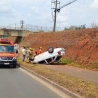 Ao chegar ao local, os bombeiros encontraram um Chevrolet Corsa Premium, de cor branca, capotado. Na sequência, eles atenderam o condutor, que estava consciente e orientado, mas apresentava escoriações. Logo depois, a equipe o transportou para um hospital da região.