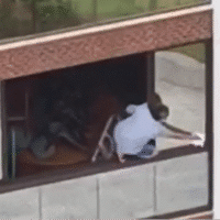 Nas imagens, é possível ver uma pequena escada dentro do imóvel, posicionada ao lado da janela. Ao alcançar o parapeito, ela apoia os dois pés sobre o trilho e fica totalmente em pé. Em seguida, chega a se equilibrar apenas com os pés, sem segurar em nada com as mãos. Logo depois, ela começa a passar um pano nos vidros.