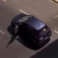 Por volta das 3h26, o vídeo mostra o HB20 trafegando pela via quando, de repente, um Fiat Palio fecha o veículo. Imediatamente, os dois carros param. Em seguida, três homens descem correndo do Palio e avançam em direção ao HB20.