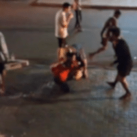Durante as agressões, o celular de um dos envolvidos cai no chão. Na sequência, um dos jovens que acompanhava a cena chuta o aparelho em direção à rua. Logo depois, outro rapaz pega o telefone e sai correndo.